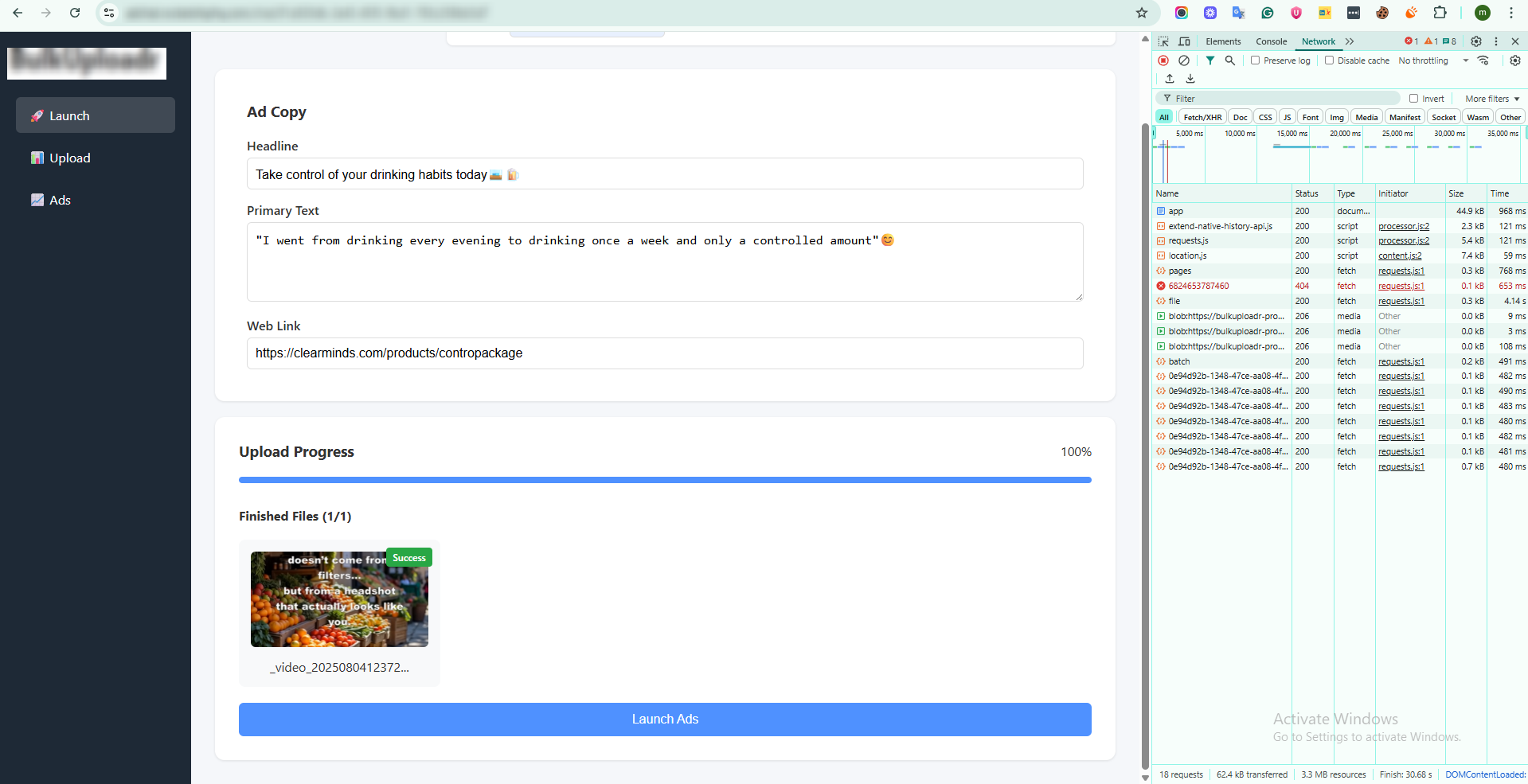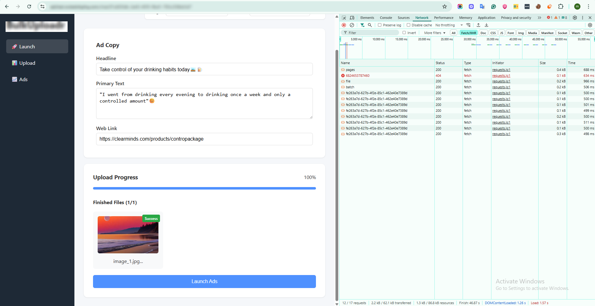 Sahal Softech designed and developed BulkUploadr, a custom web application that automates bulk Facebook ad creation using Meta’s APIs.